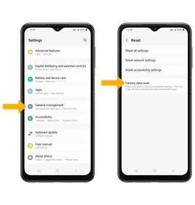 icône Paramètres > faites défiler et sélectionnez Gestion générale > sélectionnez Réinitialiser > Réinitialisation des données d'usine .