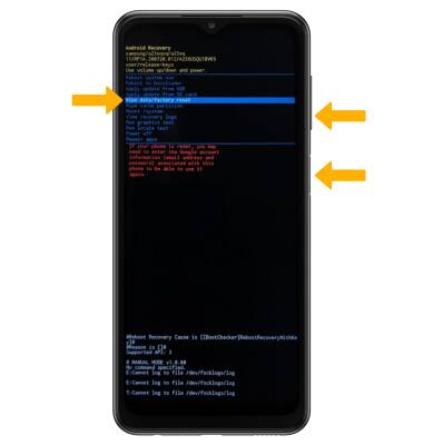 2. Appuyez sur le bouton de réduction du volume jusqu'à ce que Wipe data/factory reset soit mis en surbrillance, puis appuyez sur le bouton Marche/Arrêt/Verrouillage .